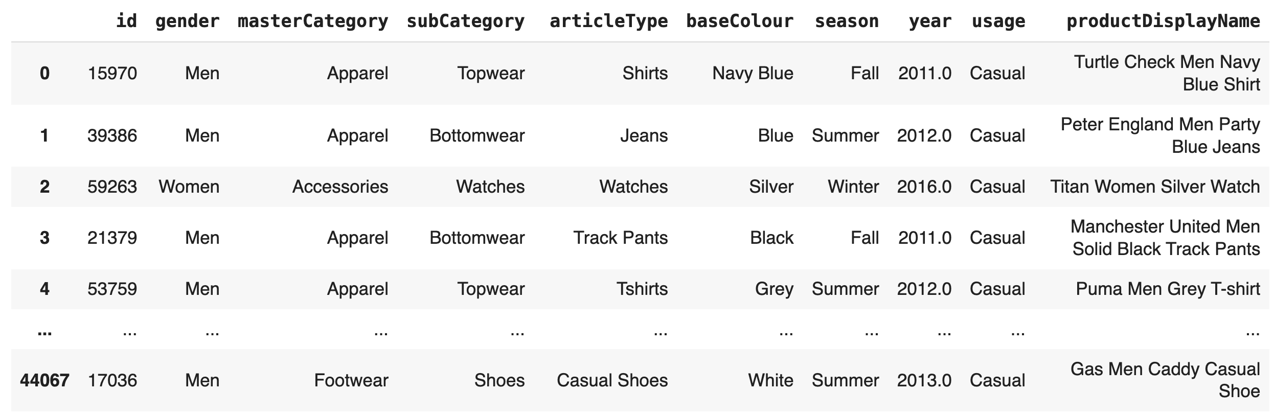 df['embeddings'] = df['productDisplayName'].apply(get_embeddings)